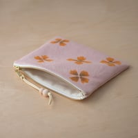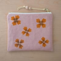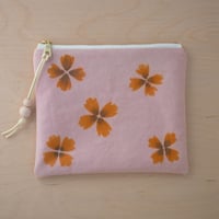 This medium-sized zipper pouch comes in an ever-so-soft light pink that was naturally dyed with cochineal. The flower print was made with real Dyer's Coreopsis flowers that were grown in my garden. Take a piece of summer with you everywhere you go! ✿